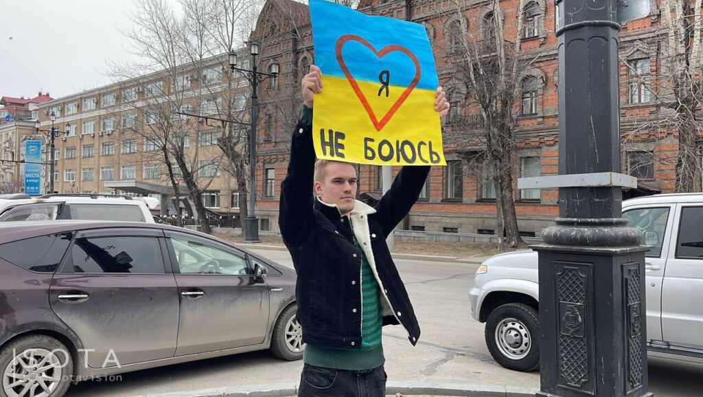 Другой задержанный, Алексей, стоял на площади и держал над головой плакат «Нет [запрещенное в РФ слово], мир Украине!». Когда его «повели», он так и шел к полицейской машине, держа плакат над головой. Свой автомобиль он предусмотрительно оставил у родителей, а на площадь приехал на автобусе. Алексей зарабатывает на жизнь тем, что устанавливает в квартирах хабаровчан окна и двери.