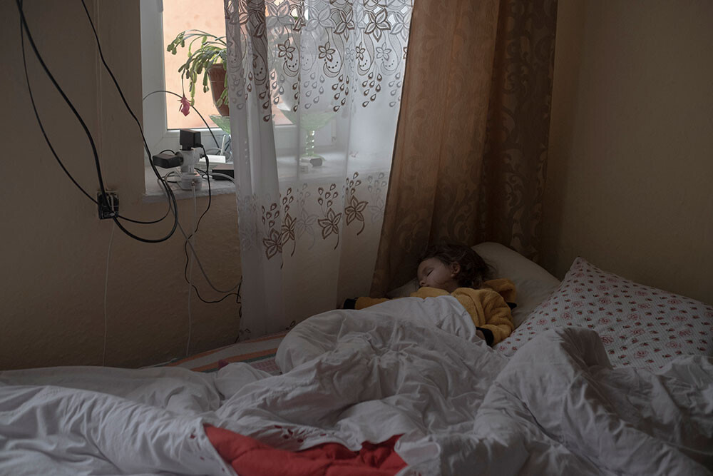 У 38-летней Лены и 35-летнего Георгия, в прошлом владельца небольшого бизнеса по ремонту телефонов в Киеве, пятеро детей. Когда город начали бомбить, Георгий был на работе. Лена с детьми спряталась в бомбоубежище, но это место напугало их больше, чем звуки взрывов на улице. Больше семья туда не возвращалась.