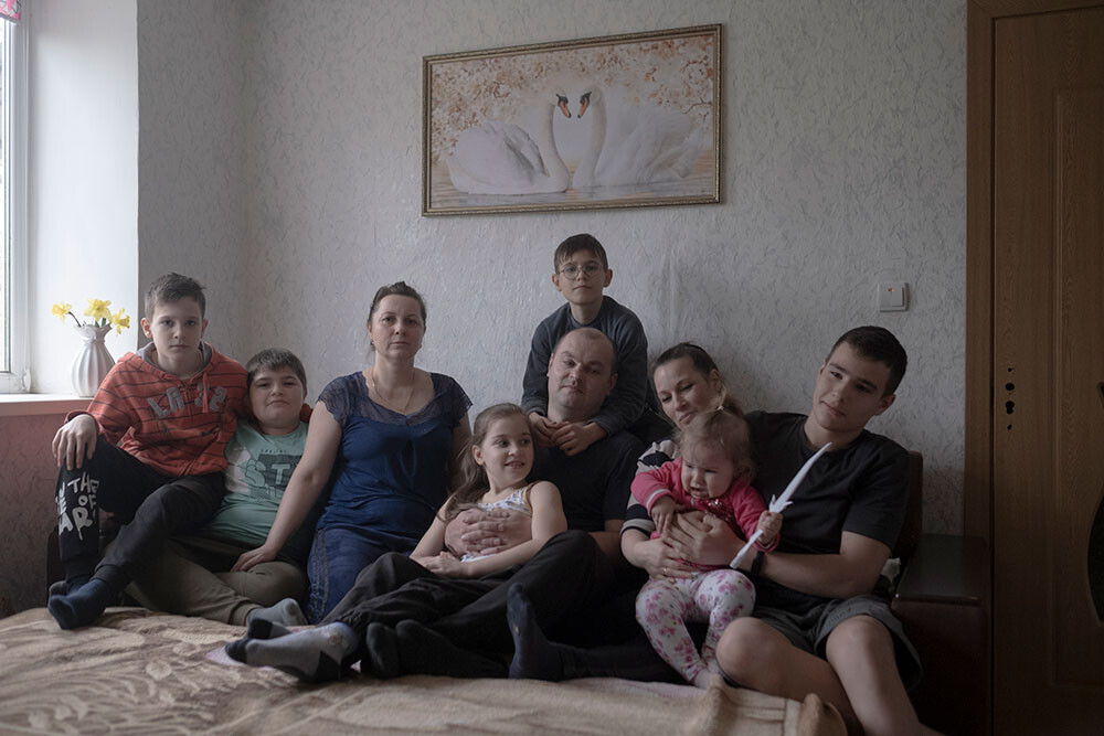 Рядом с их домом был военный завод. Целились, видимо, туда, но попали в соседнее жилое здание — снесли крышу. Тогда из центра семья переехала к родителям Лены: жили вдевятером в однокомнатной квартире, с лежачим папой. Георгий работал до последнего, но когда ездить на работу стало небезопасно, закрыл помещение на ключ. Последний раз он выбрался в центр, чтобы сдать кровь для пострадавших. Вскоре кормить детей стало нечем: бизнес закрылся, прилавки магазинов опустели.