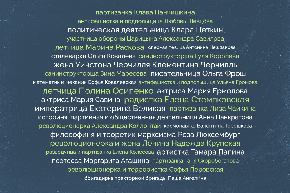 «Мужчины в комиссиях не знакомы с herstory [женской историей], не знают ее и не хотят знать. Женщины, если они есть [в комиссиях], не защищают интересы женщин, они, по сути, пособницы патриархата, — считает Анна Алимпиева. — В итоге мы ходим по кругу: никто не узнает о женщинах, которые внесли колоссальный вклад, потому что их имена не звучат».