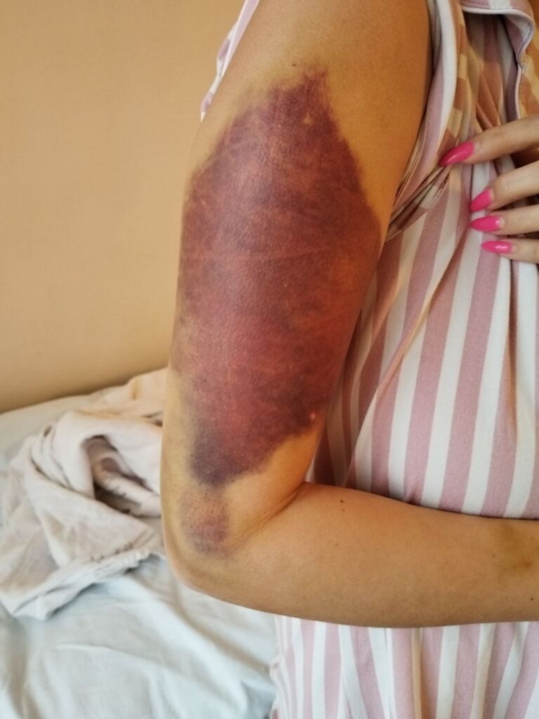 «Я понимала, что Азамат мог наврать даже дочери, поэтому на всякий случай предупредила соседку, что иду. В подъезде увидела, что моя дверь нараспашку, и пошла сначала к соседке. Тут из квартиры выскочил Азамат и силой затащил меня внутрь. Он раздел меня и бил. И ногами, и руками. По голове, — описывает она тот день. — Соседка звонила в полицию, но они приехали только через два часа».