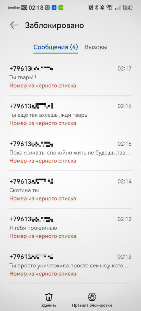 «Три месяца я не могла выходить из дома. Сначала из-за гематом по всему лицу — он старался бить меня в голову. Говорить я не могла из-за сломанной челюсти. Потом я боялась вообще из дома выйти, потому что он угрожал мне. “Куда бы ты ни поехала — я тебя уничтожу”, “Я, сука, рядом”, “Пока я жив, ты жить не будешь”, — Диния читает сообщения от бывшего мужа, после блокировки отправлявшего угрозы даже через банковское приложение. — Скинет 50 рублей “на алименты” и вместе с этим “Ты еще как ах***шь, жди, тварь”».