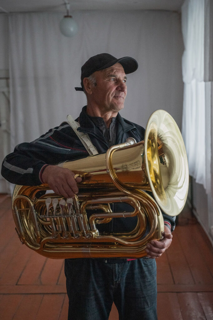 Алексей руководит оркестром с 2012 года (он окончил колледж культуры и искусства в Минусинске) и играет в нем сам — на трубе и баритоне. Признается, что большая часть его зарплаты руководителя уходит на содержание оркестра, но он там не из-за денег.