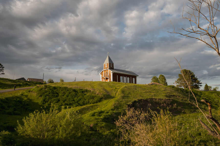 На горе в центре деревни возвышается кирха — лютеранская церковь. Ее построили в 1888 году на пожертвования финнов. В 1938-м с церкви сбросили колокол и крест, само здание превратили в склад, позже — в клуб. В советские годы там проводили свадьбы и праздники.