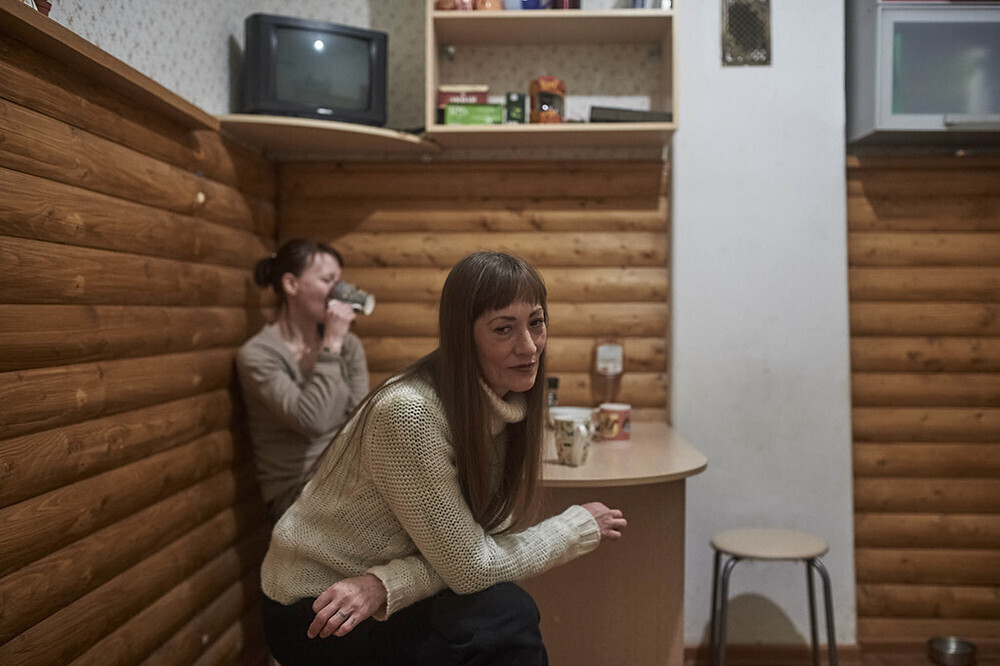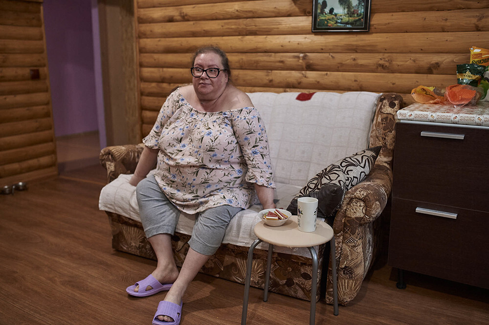 Besides the kitchen, the centre has three rooms, a future conference room, Anna’s office with a sofa and nineties-style “golden” wallpaper, a shower and a toilet. Lena shares a room with Katya, a newcomer: two bunk beds, two armchairs, a coffee table, a wardrobe and a sideboard. Agniya occupies a separate room as Anna’s assistant and the centre’s first settler.